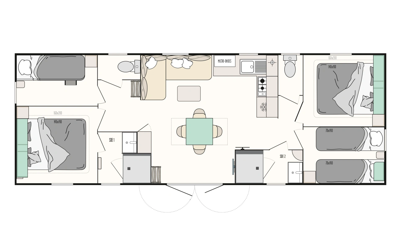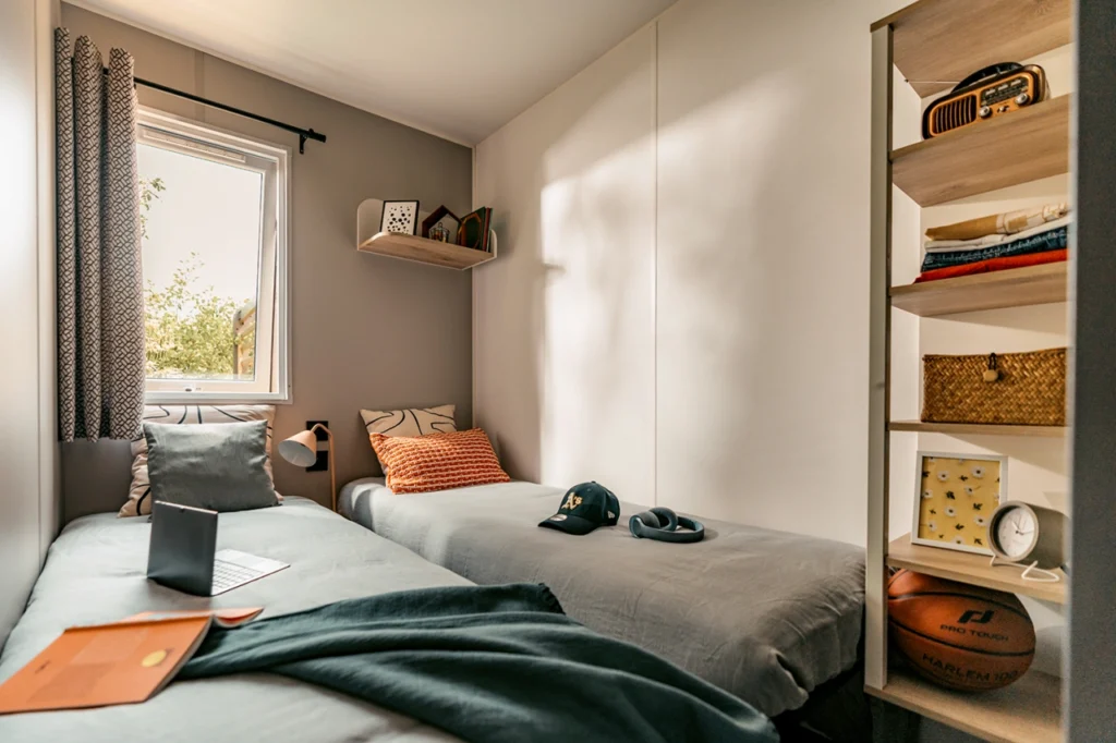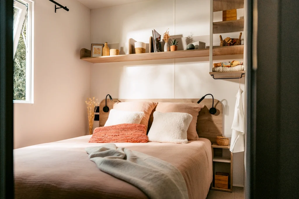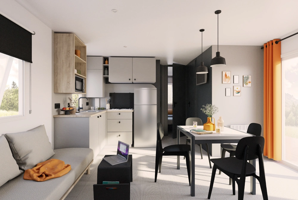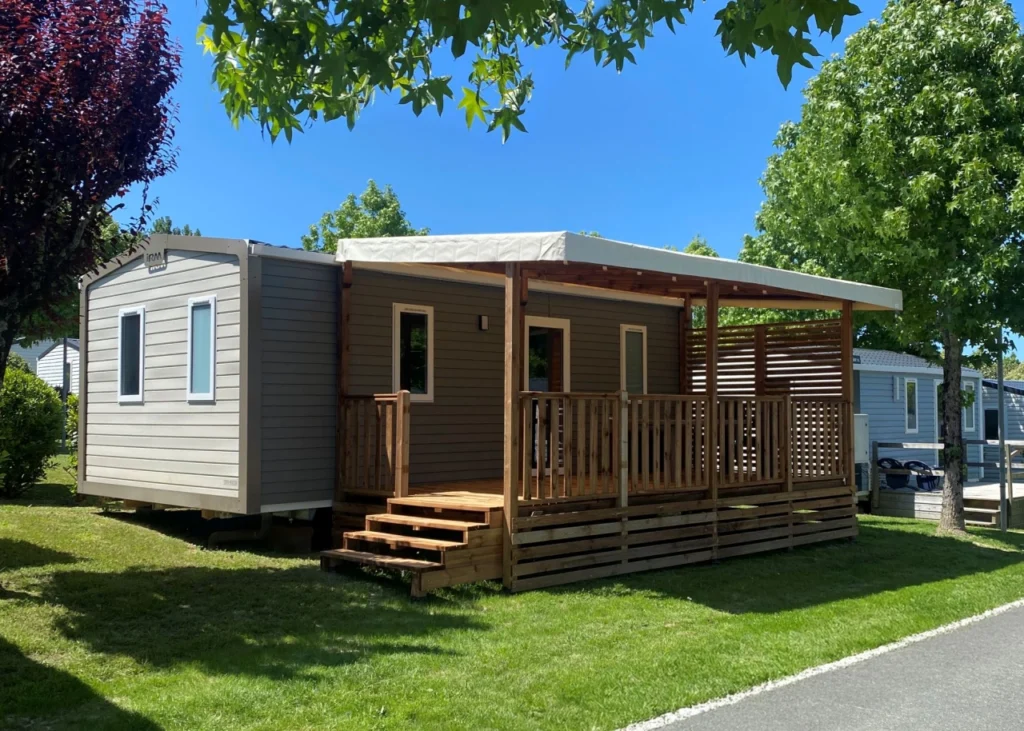 For a nature break with family or friends, the 4-star Eskualduna Village campsite offers mobile homes for 8 people with a beautiful covered terrace to extend your moments of conviviality. Enjoy the largest of our mobile homes, with every possible comfort: two bathrooms, a dishwasher and air conditioning!